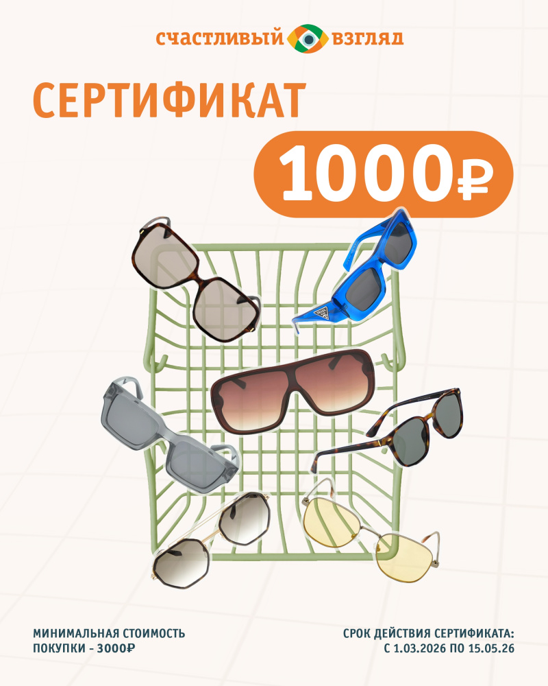 Покажите этот сертификат на кассе оптики "Счастливый взгляд" и получите скидку на солнцезащитные очки!